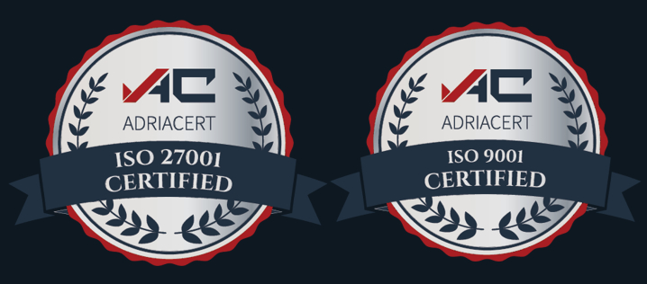 S nama ste u sigurnim rukama! Posjedujemo certifikate ISO 9001 za upravljanje kvalitetom i ISO 27001 za informacijsku sigurnost, što jamči visoke standarde u zaštiti vaših podataka i pouzdanost naših usluga. Naša predanost kvaliteti i sigurnosti osigurava vam bezbrižno poslovanje uz vrhunsku podršku.